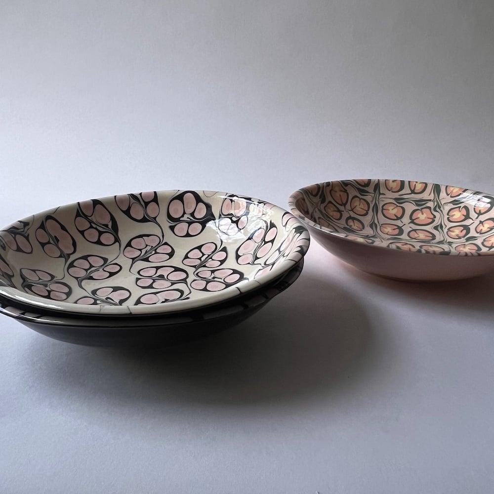 This handmade slipware pasta bowl brings intricate beauty to your dining table. Great for most meals, and as a countertop fruit bowl or display piece.